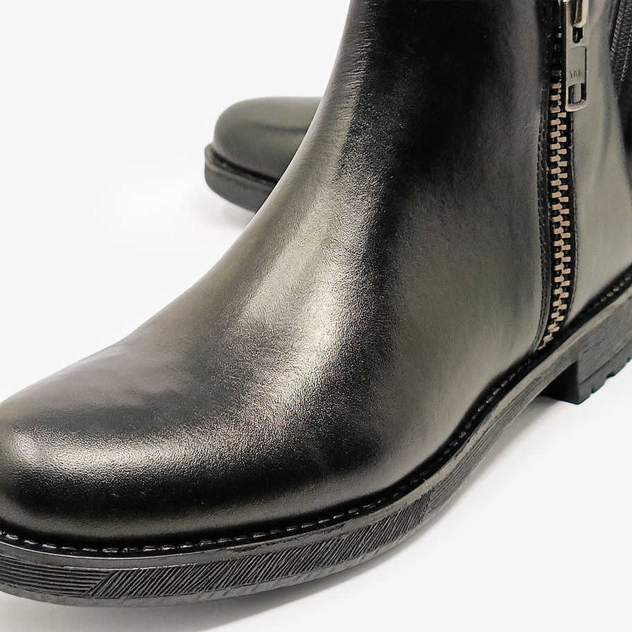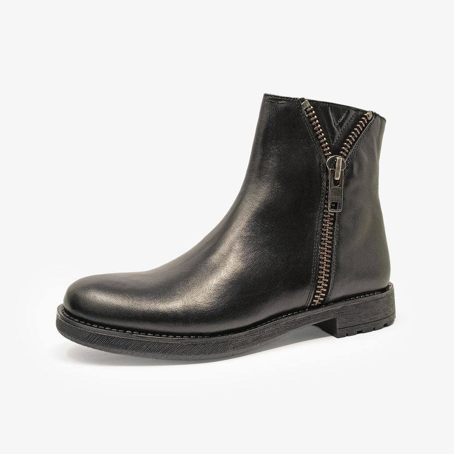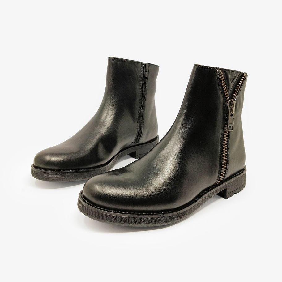 Stivaletti donna con dettaglio brogue verticale e cerniera laterale.