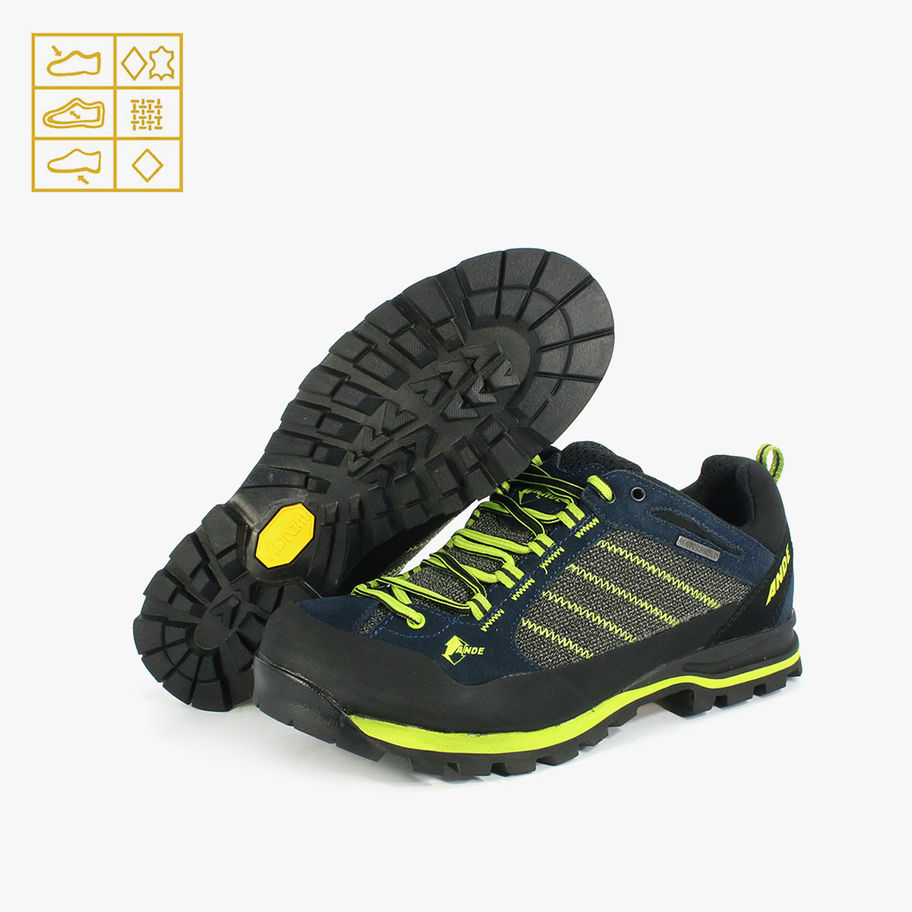 Scarpa tecnica con suola Vibram® e membrana Watershield per il trekking e l’escursionismo di medio impegno. Particolarmente resistente grazie alla tomaia in pelle scamosciata, gli inserti in Kevlar® e il rinforzo gommato del puntale.