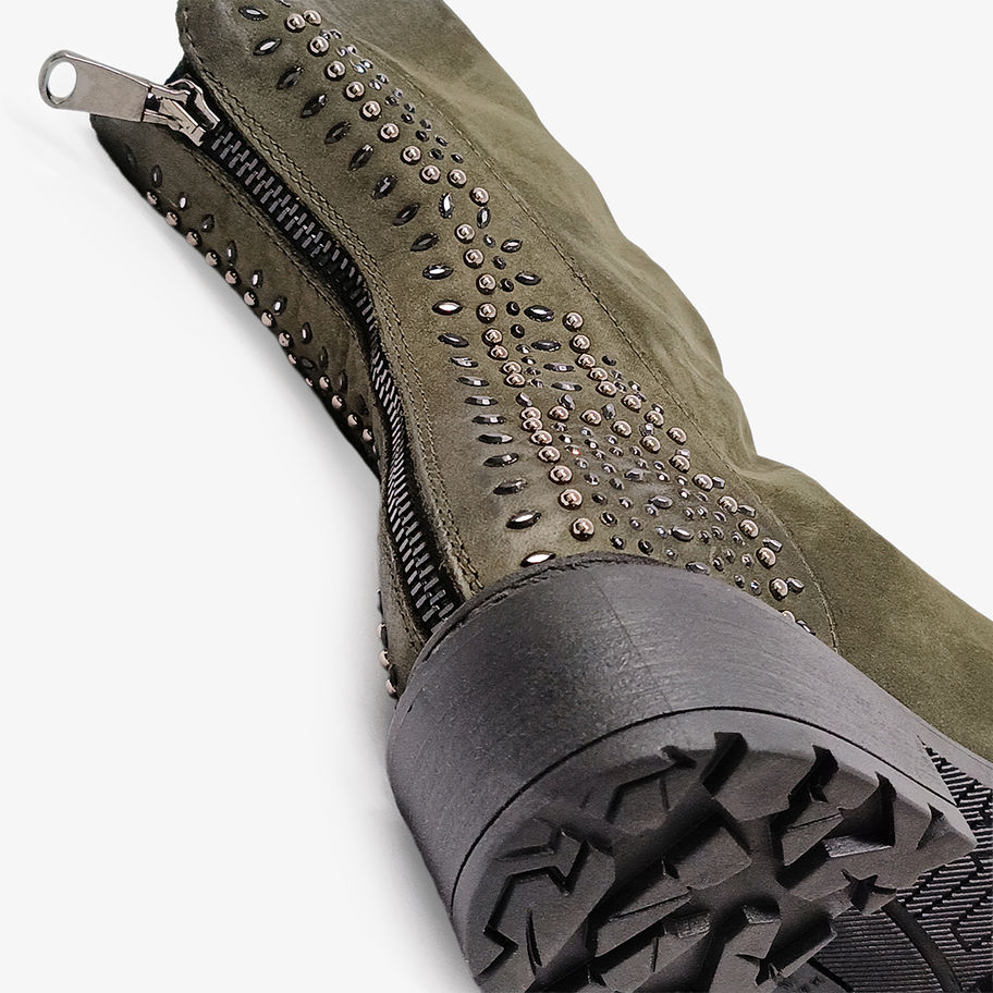 DADA - Anfibi nabuck con suola carrarmato e borchie - Verde Bosco, Nero