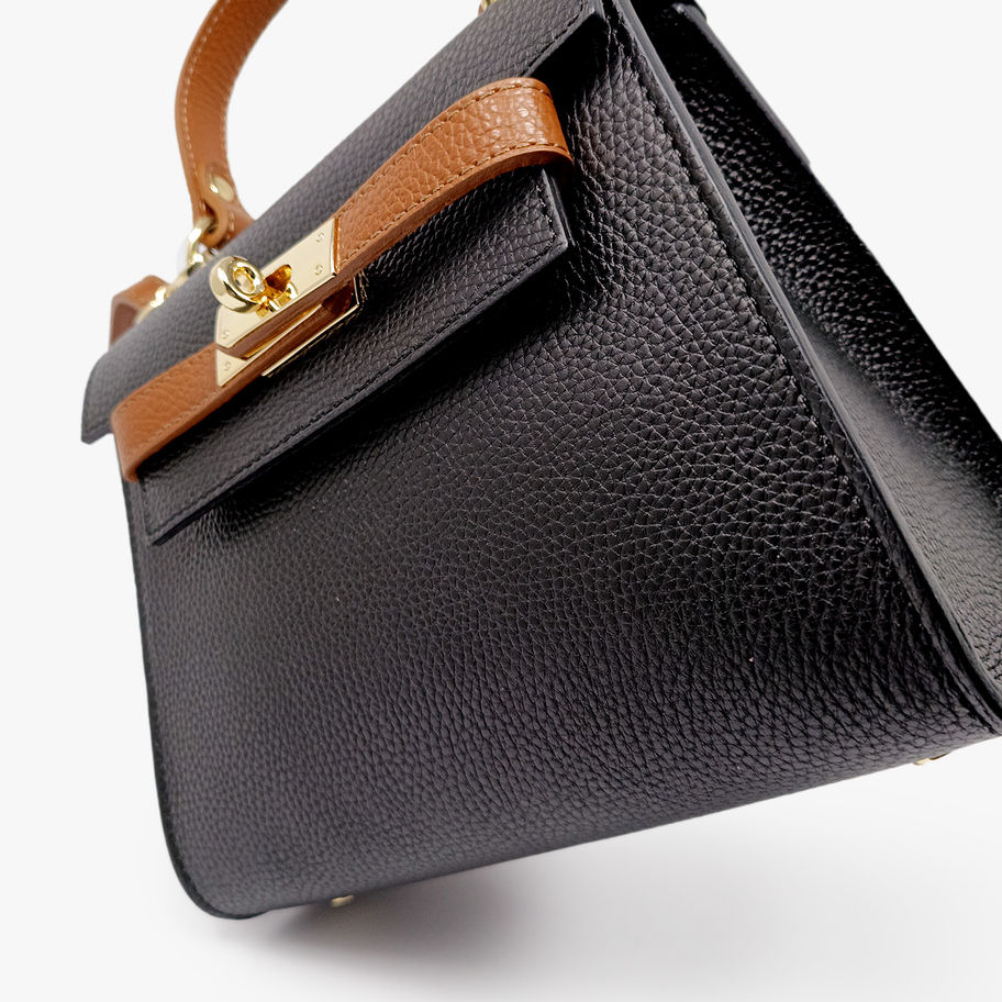 Borsa a mano in pelle bicolore. Tracolla removibile.