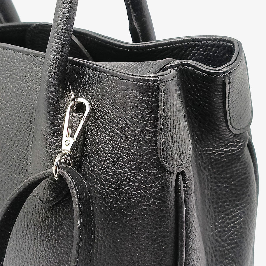 Borsa a mano in vera pelle con tracolla removibile .
