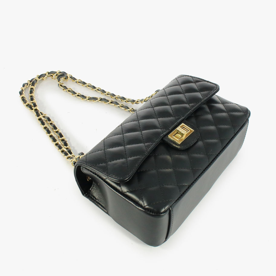 Borsa trapuntata in Vera Pelle, prodotta in Italia con tracolla regolabile.