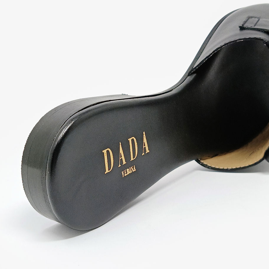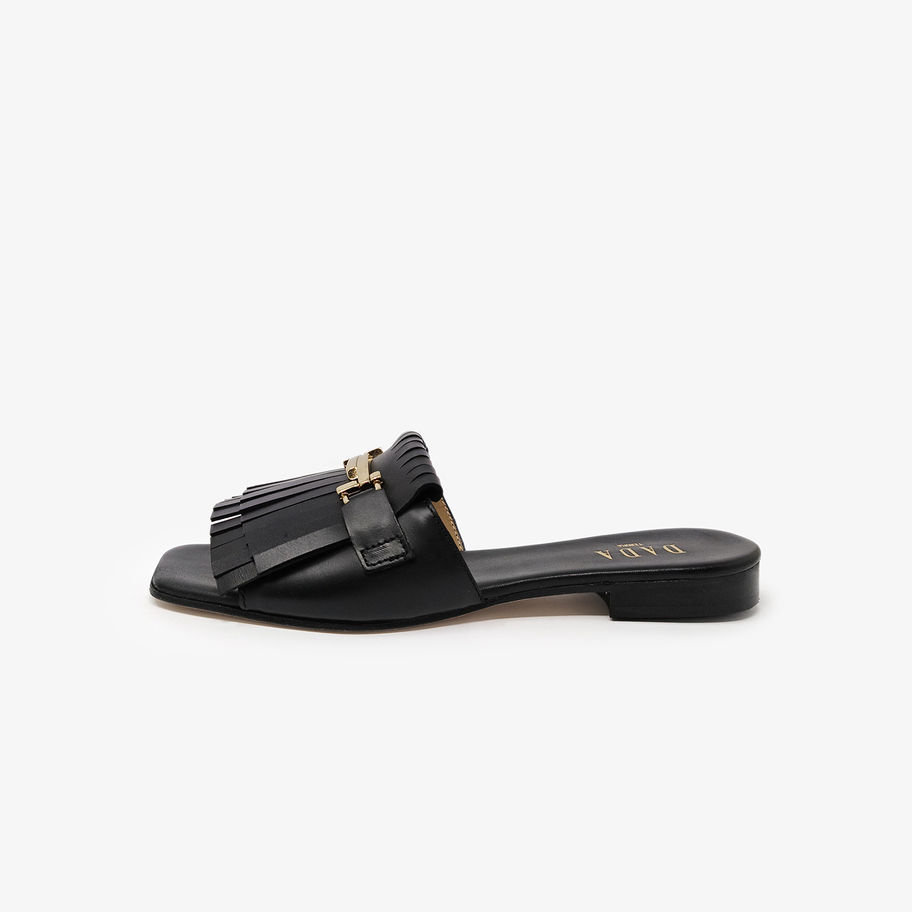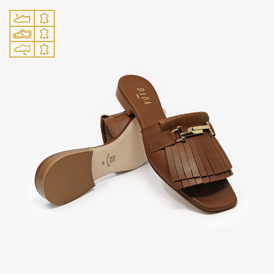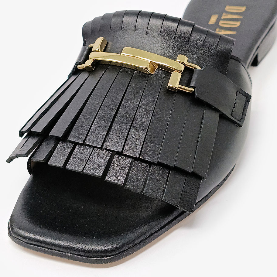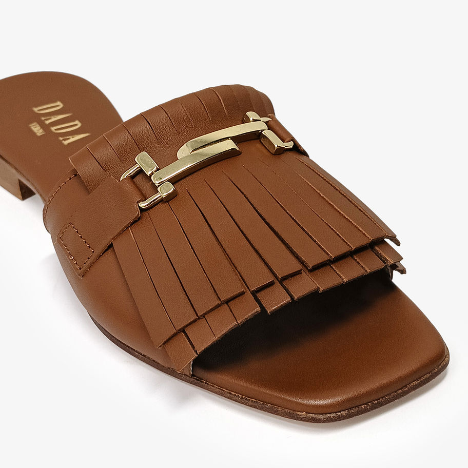 DADA - Ciabattine con punta quadrata e frange - Cuoio, Nero