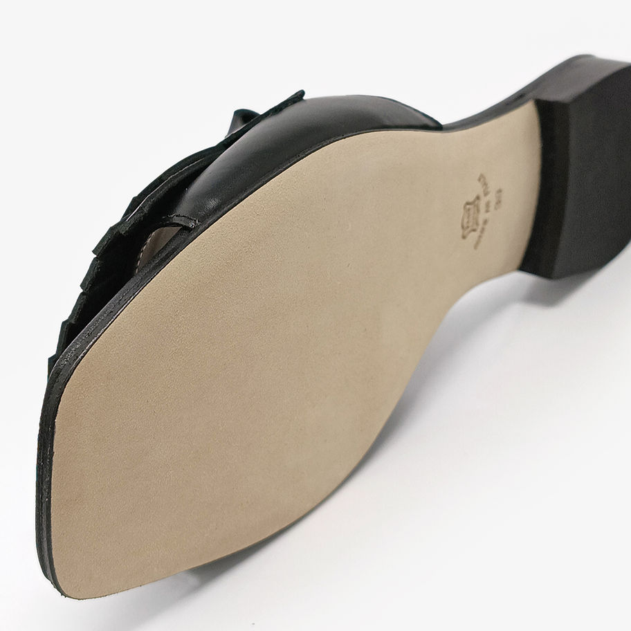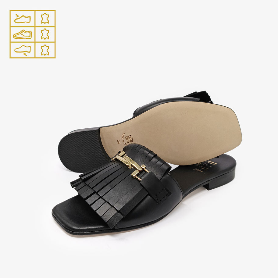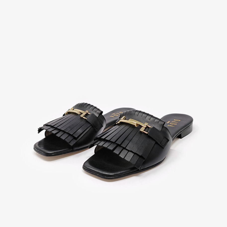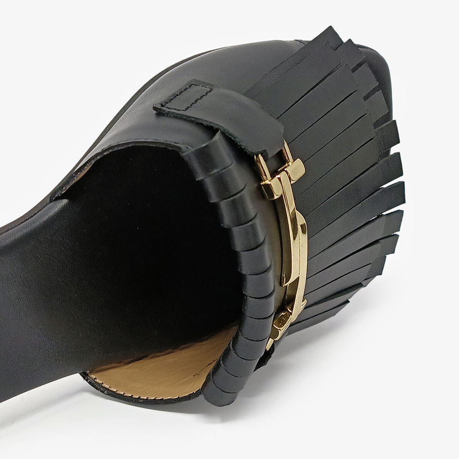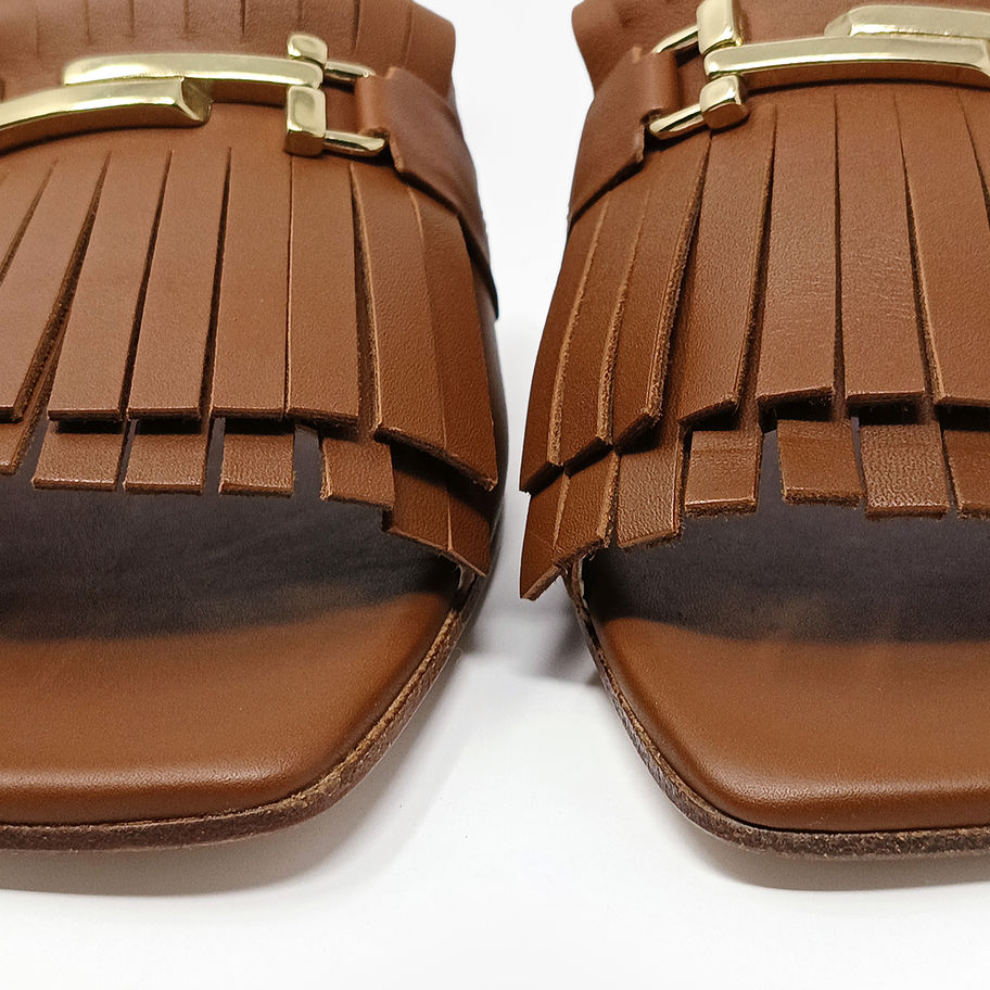 Ciabattine con punta quadrata e frange.