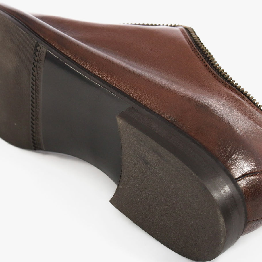 Francesine in pelle a punta con zip decorativa.