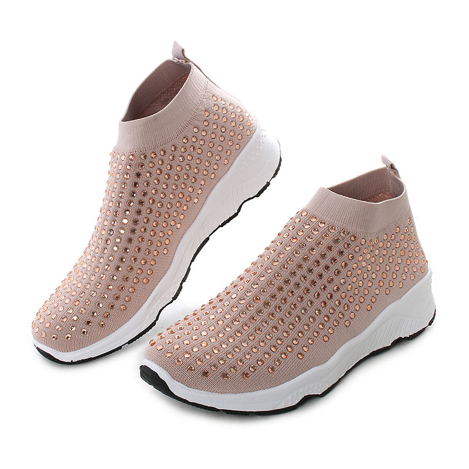 Sneakers alte da donna a calza decorate con strass.