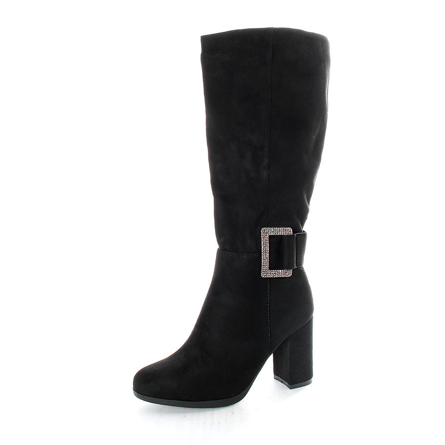 Stivali in tessuto effetto scamosciato, cinturino decorativo alla caviglia.