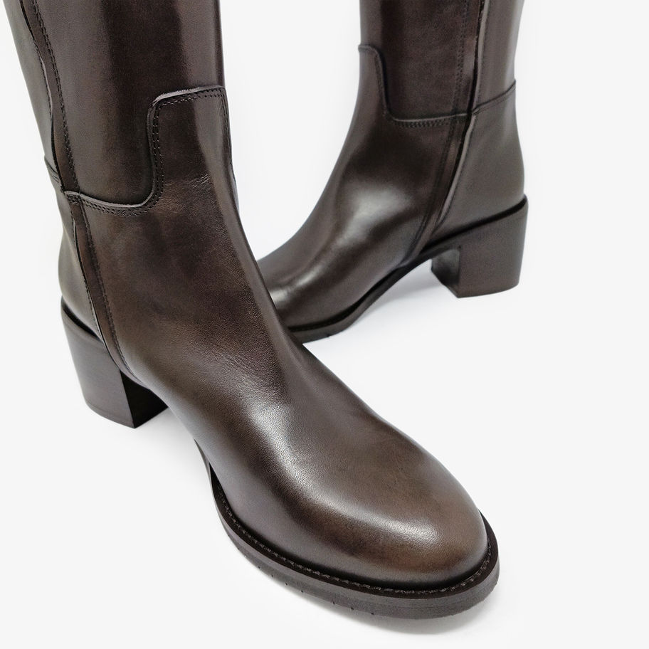 Stivali eleganti con tacco a blocco, cerniera laterale.