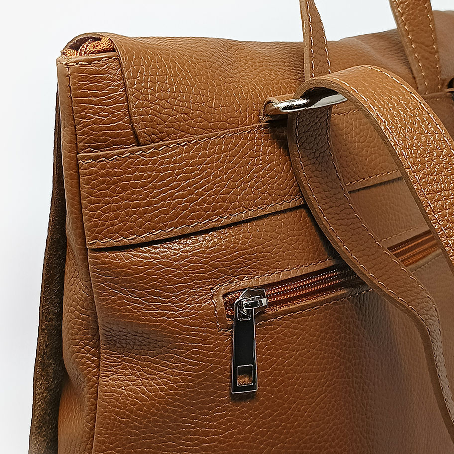 Zaino trasformabile in borsa, bretelle regolabili, 100% Vera Pelle, prodotto in Italia.