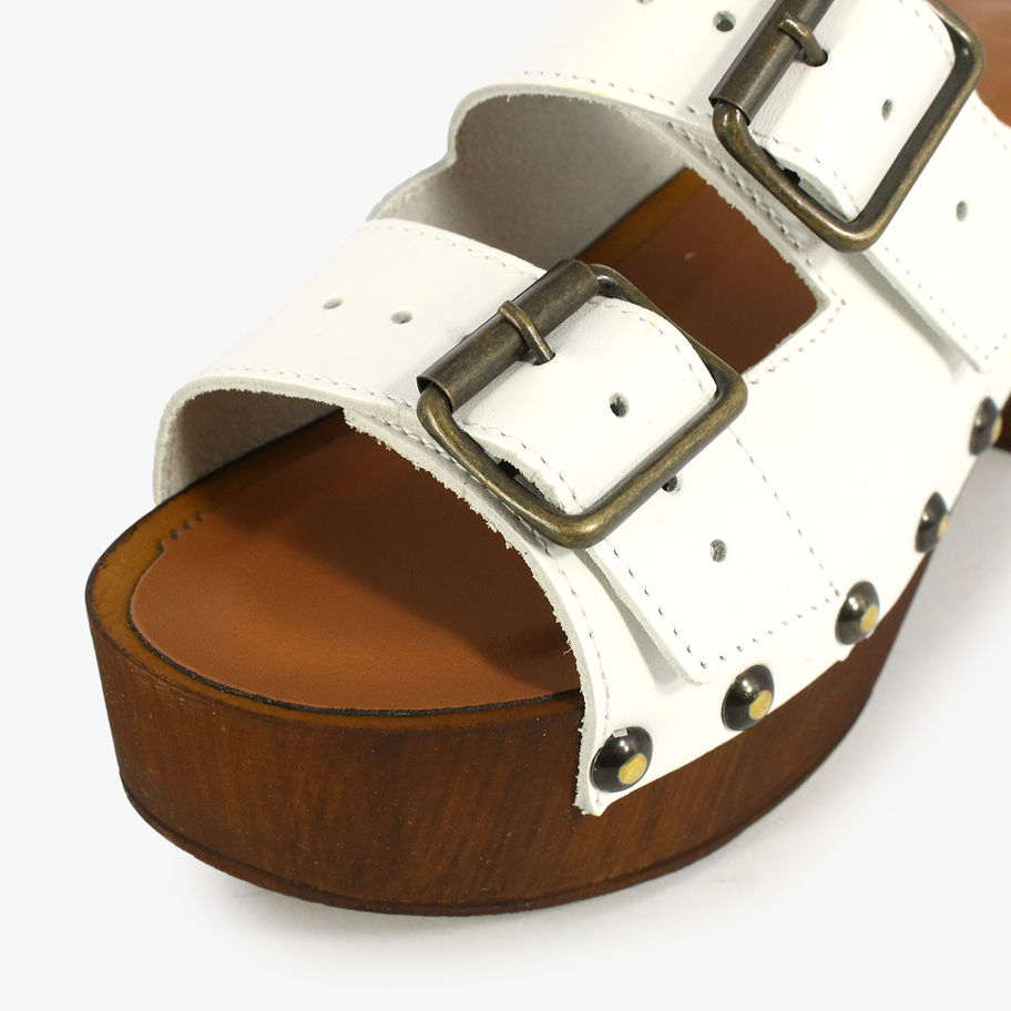 Zoccoli doppia fascia in pelle.