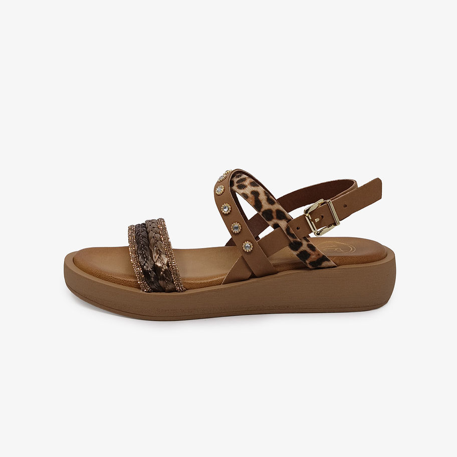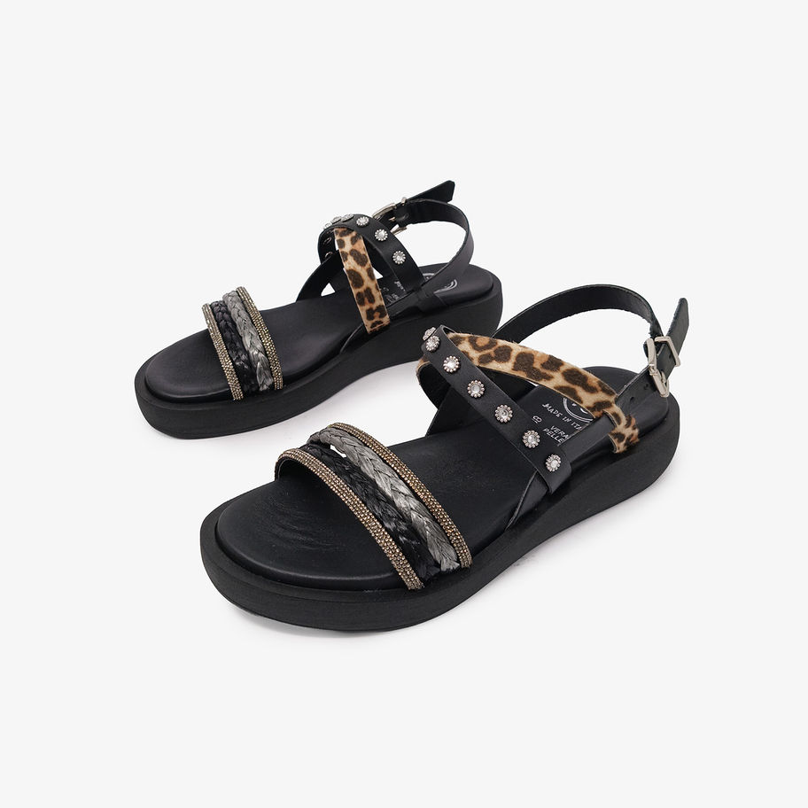Diciottopiu - Sandali con zeppa bassa effetto animalier - Nero, Cammello