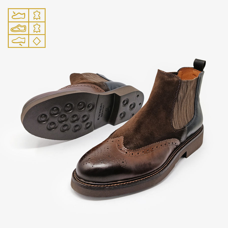 EXTON - Stivaletti chelsea bicolore - Marrone, Blu