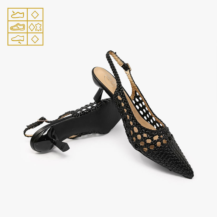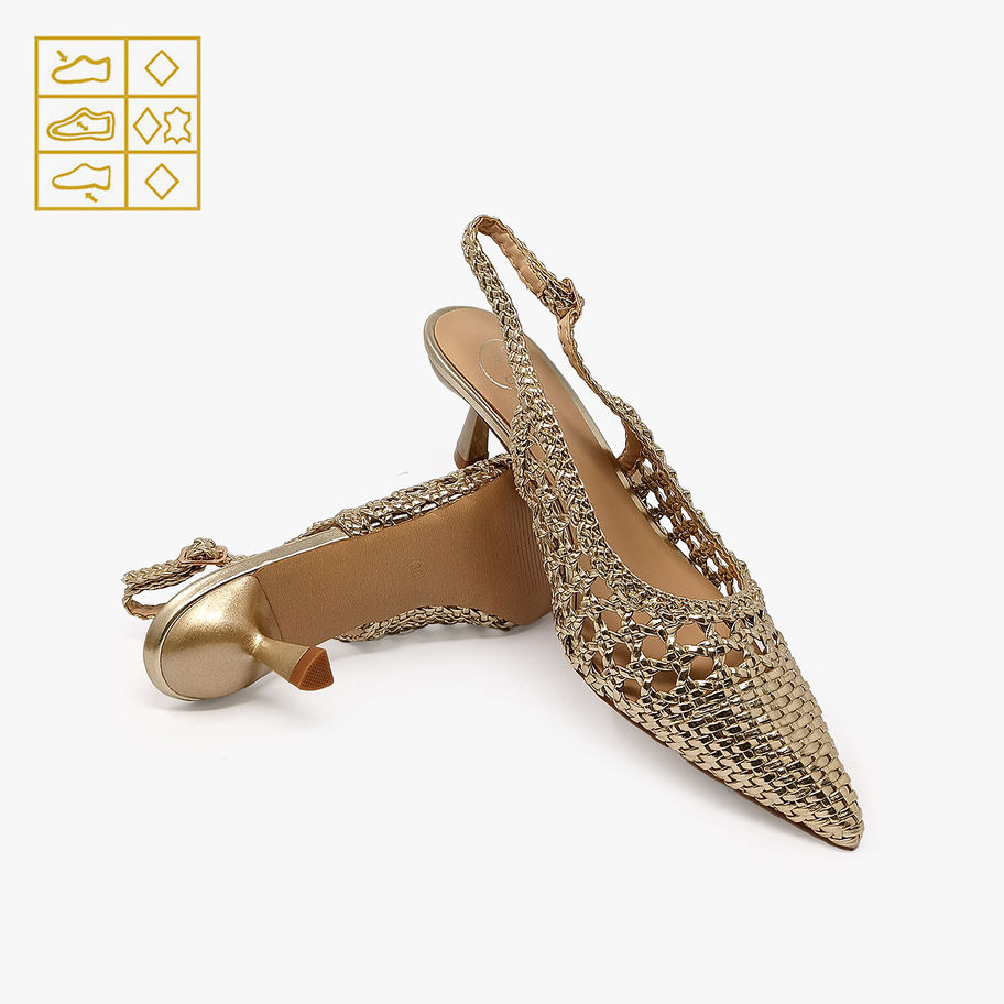 GALIA - Décolleté traforate sling-back - Nero, Oro