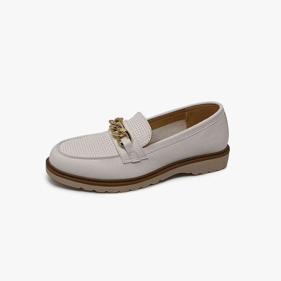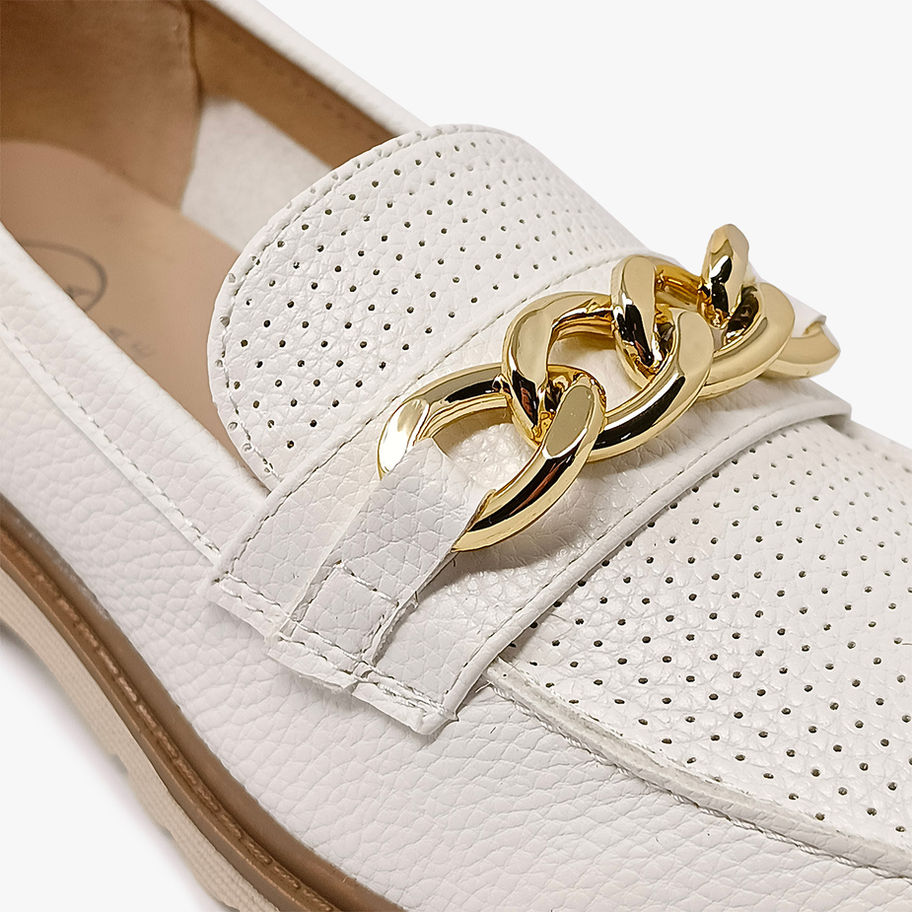 GALIA - Mocassini con catena dorata - Cuoio, Bianco