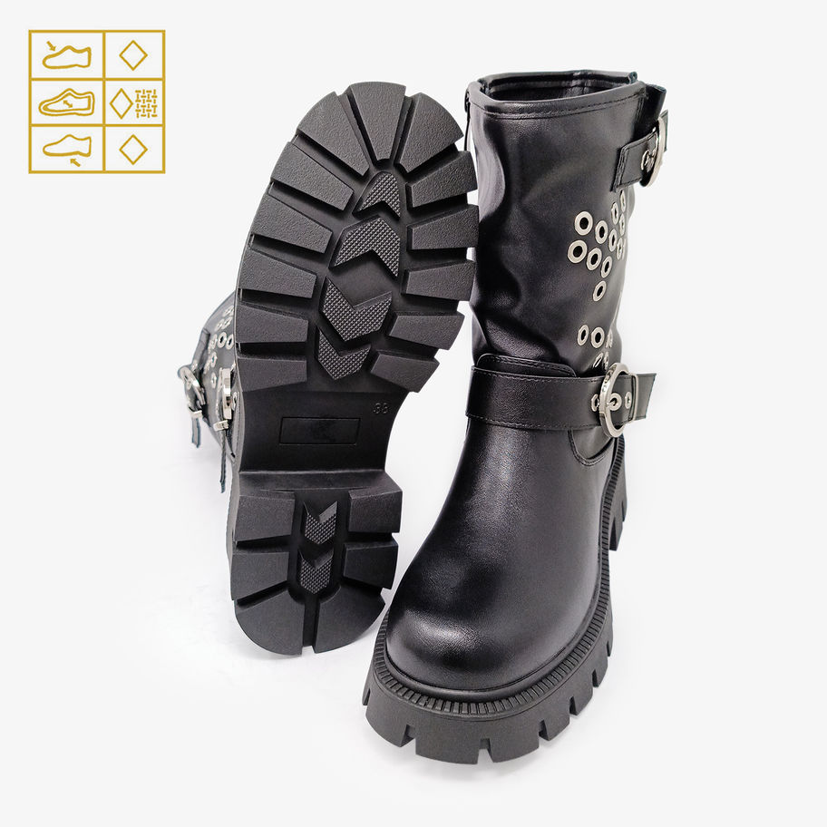 Stivaletti biker con borchie a occhiello e cerniera laterale.