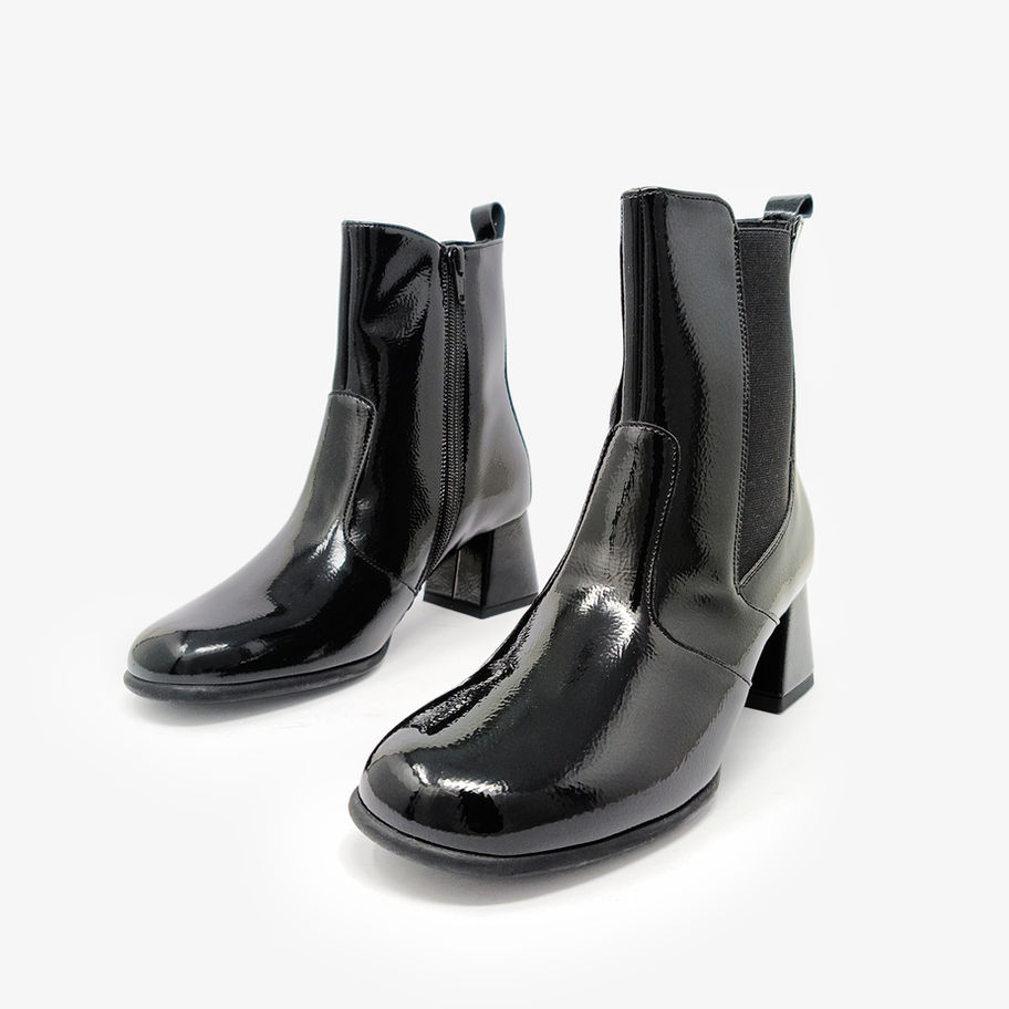 Tronchetti tacco quadrato e zip laterale.