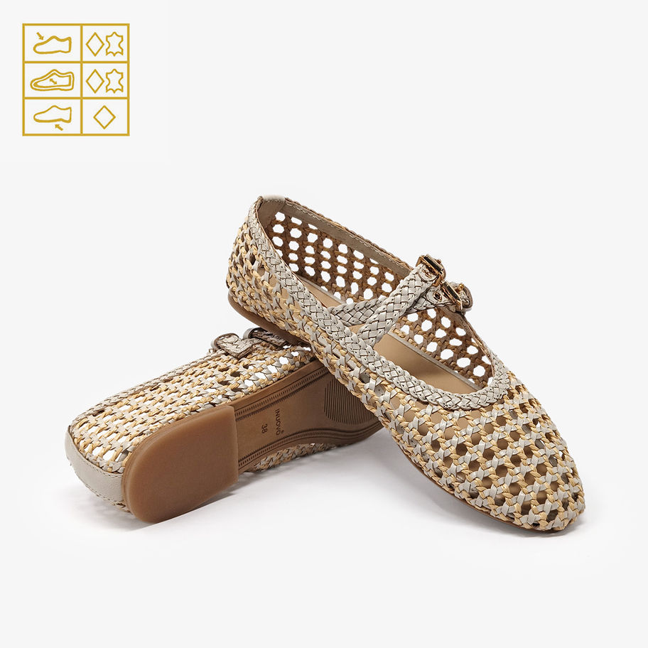 INUOVO - Ballerine traforate doppio cinturino -Beige, Marronee