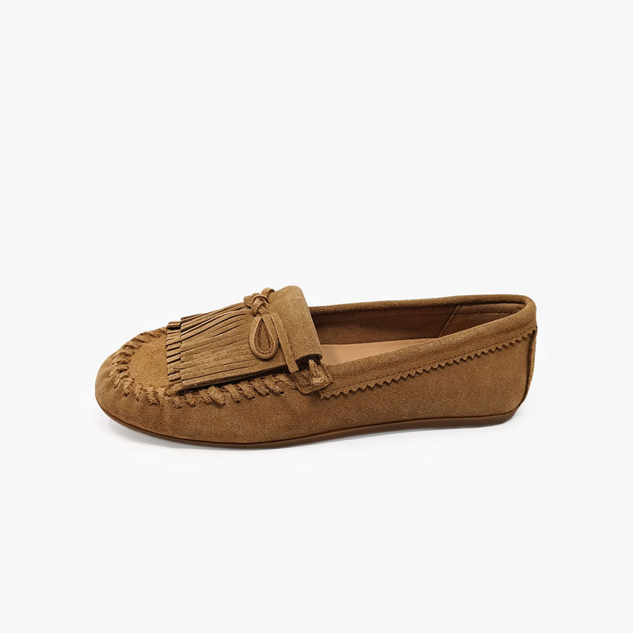 Mocassini con frangia e fiocchetto.