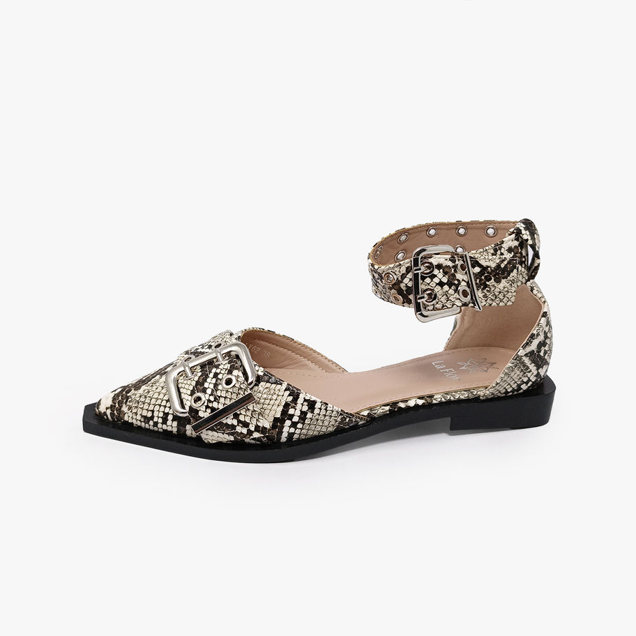La Flor - Ballerine animalier con cinturino alla caviglia - Pitonato, Leopardato