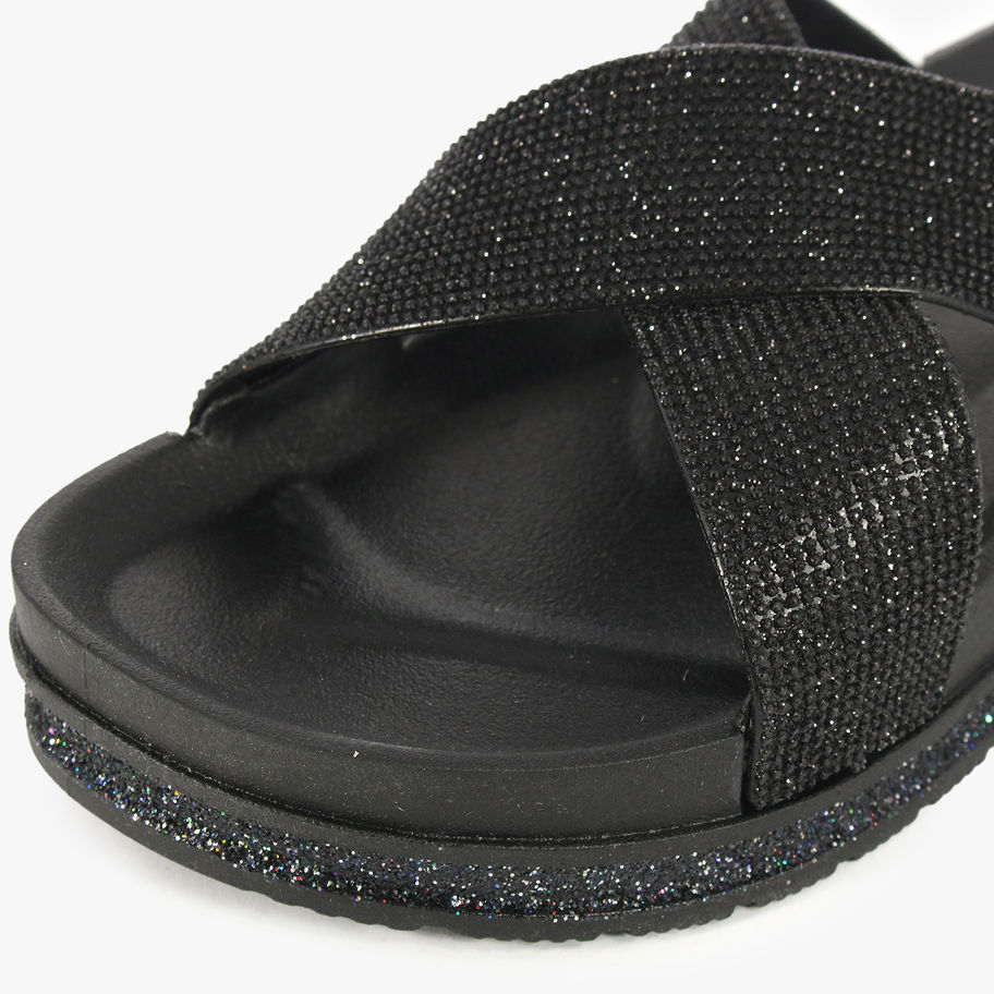 Ciabatte incrociate con strass.