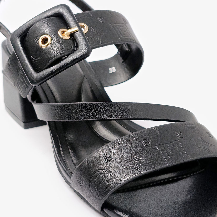 Sandali con tacco comodo e fibbia regolabile.
