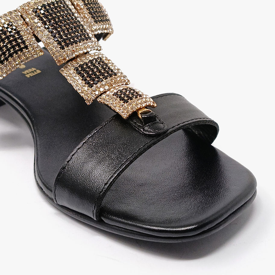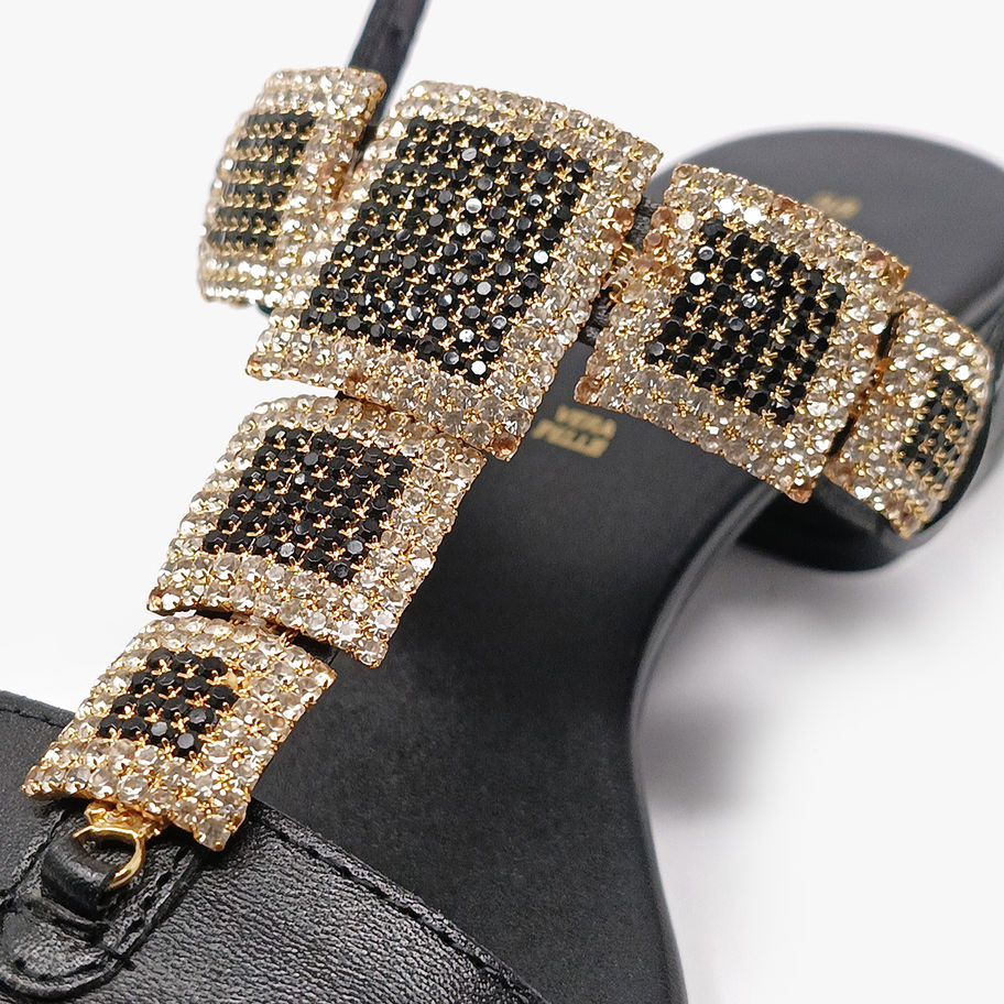 Le Chicche - Sandali gioiello con tacco basso - Nero, Cuoio