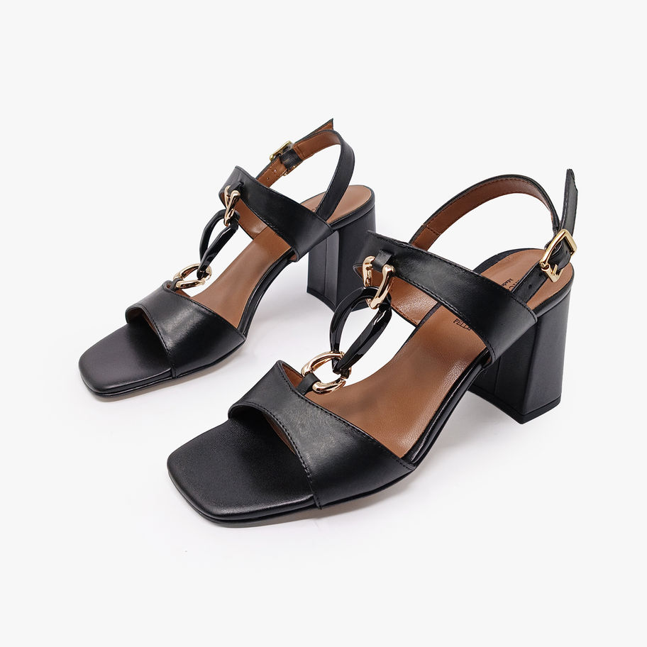 Linea Uno - Sandali con catena e tacco grosso - Nero, Nude