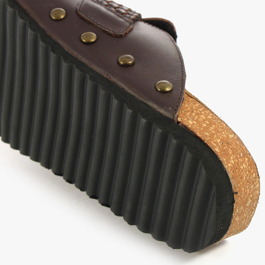 Sabot in pelle con borchie e fascia intrecciata.