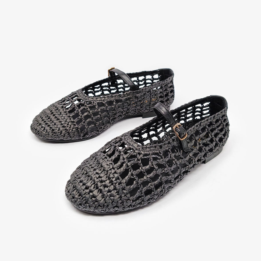 Ny-Lon - Ballerine in rafia traforate - Beige, Nero