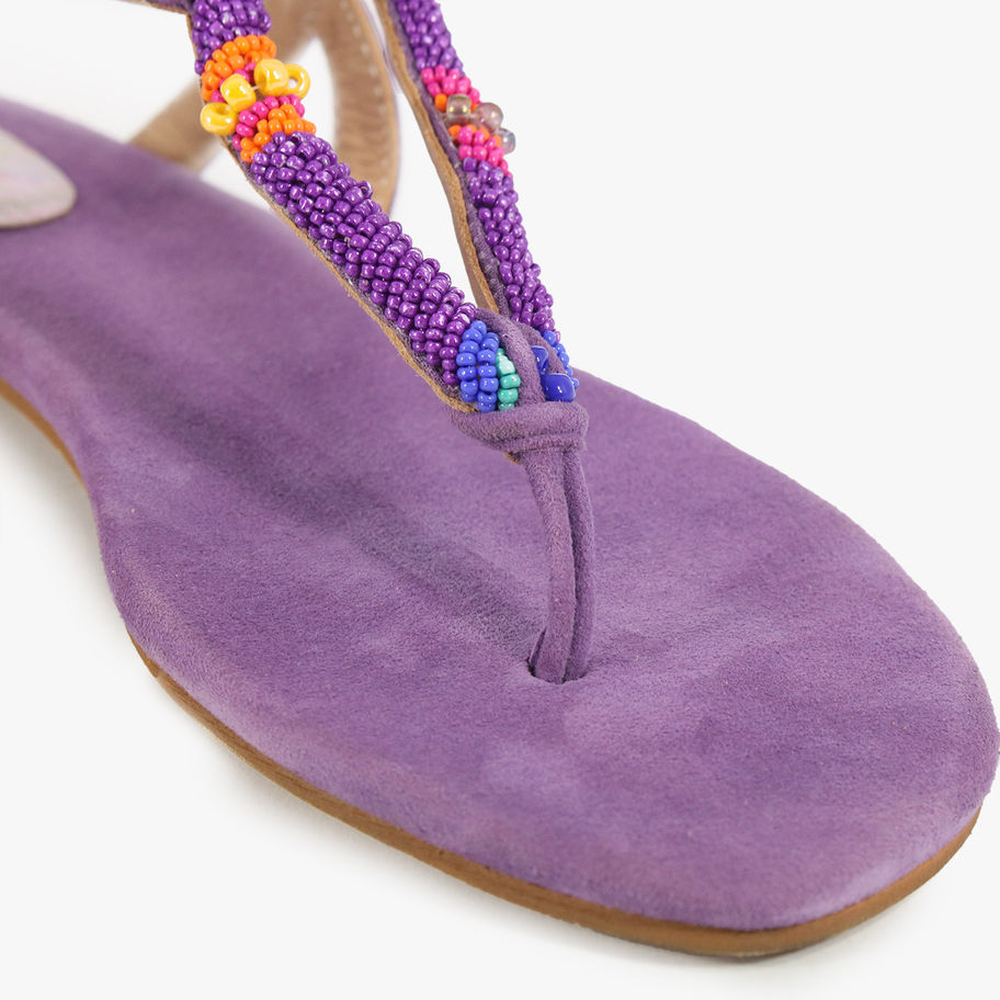 Infradito scamosciato con perline.